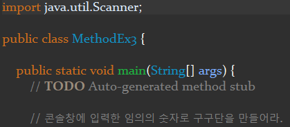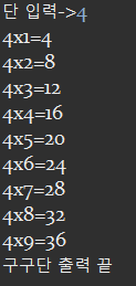 // 문제 : 콘솔창에 입력한 임의의 숫자로 구구단을 만들어라.