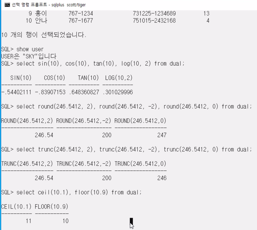 SQL> select last_day(sysdate), next_day(sysdate, '월'), add_months(sysdate, 3) from dual;