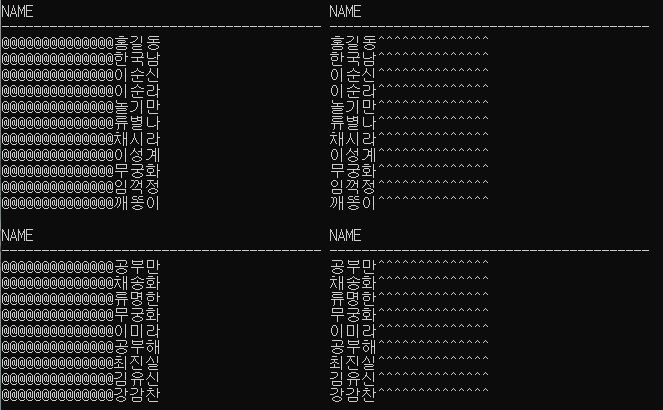 ex) select lpad(saname, '20', '@') name, rpad(saname, 20, '^') name from sawon