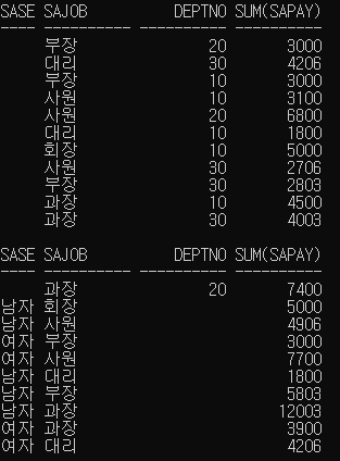 SASE SAJOB DEPTNO SUM(SAPAY)