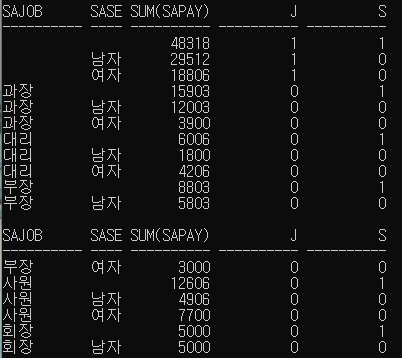 group by grouping sets( (sasex, sajob), (sajob, deptno) );