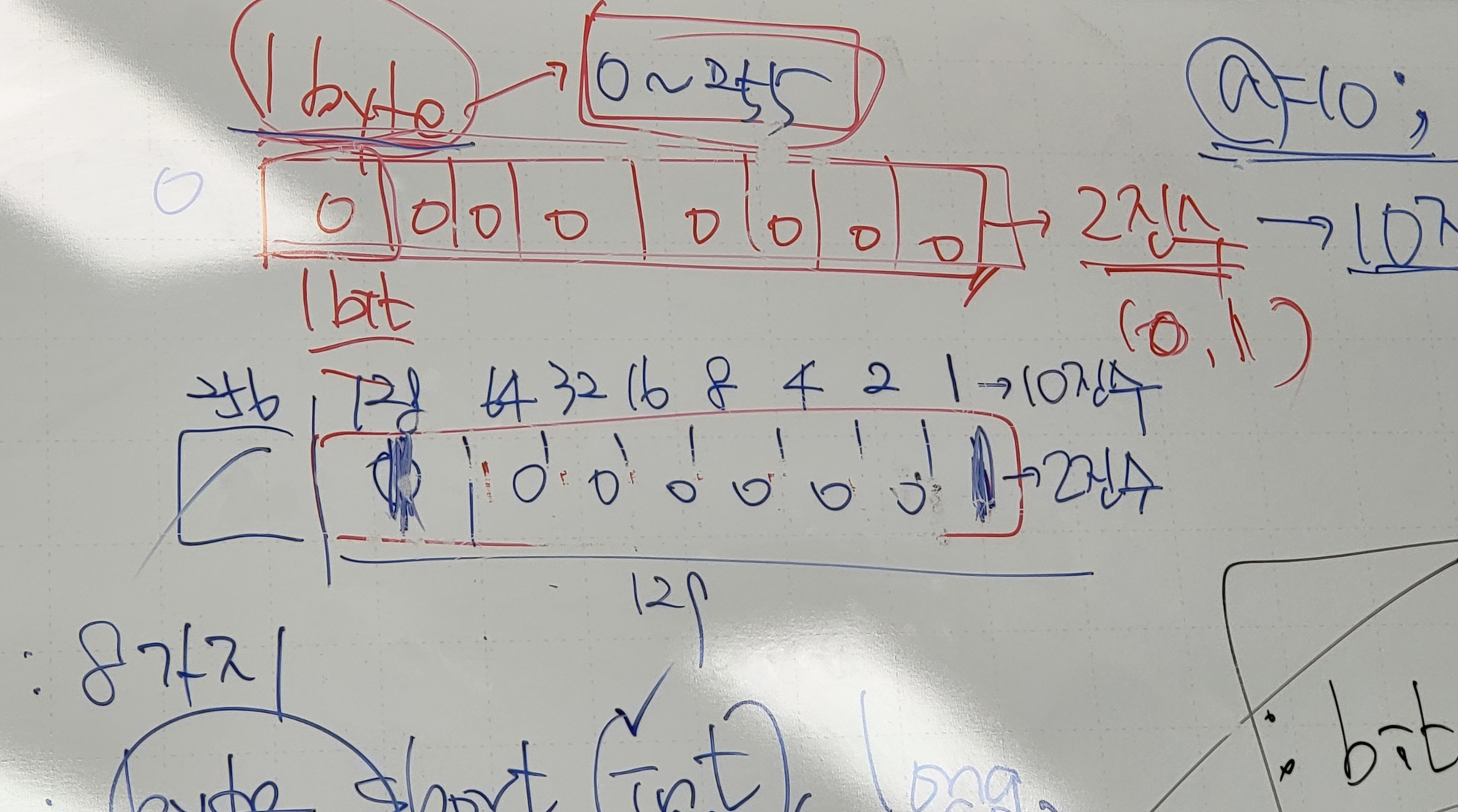 1byte = 0~255 (그러나 음수를 사용하는 순간부터 숫자 유효범위가 반으로 갈림 -128~127 이런식으로)