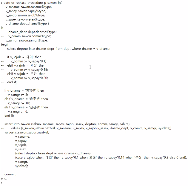 elsif v_sajob='부장' then v_comm := v_sapay*0.2;