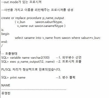 -- in mode만 사용(반드시 리턴값이 1개 존재하니까)