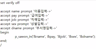 -- values (s_sawon_sabun.nextval, v_saname, v_sapay, v_sajob, v_sasex, dname_dept, v_comm, v_samgr, sysdate);