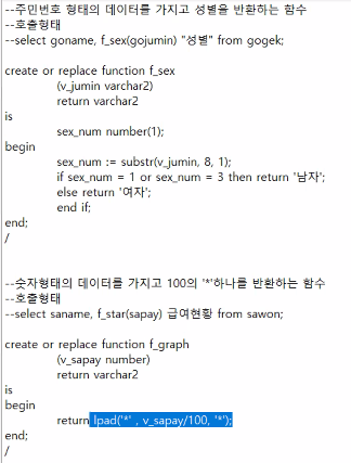 -- select saname, sapay, f_graph(sapay) star, sahire, f_gigan(sahire) 근무기간 from sawon;
