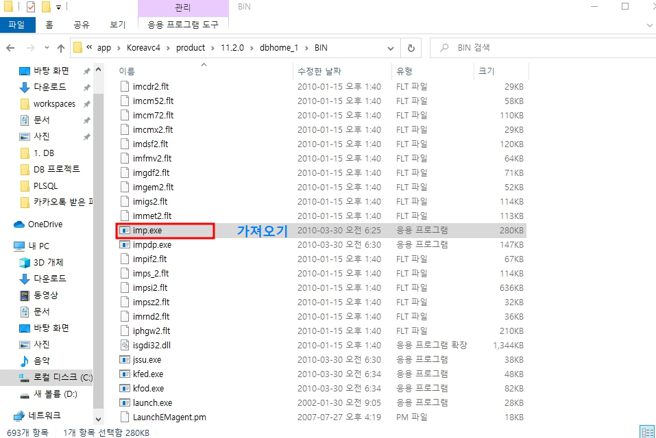 <오라클 DB exp(백업), imp(복원)>