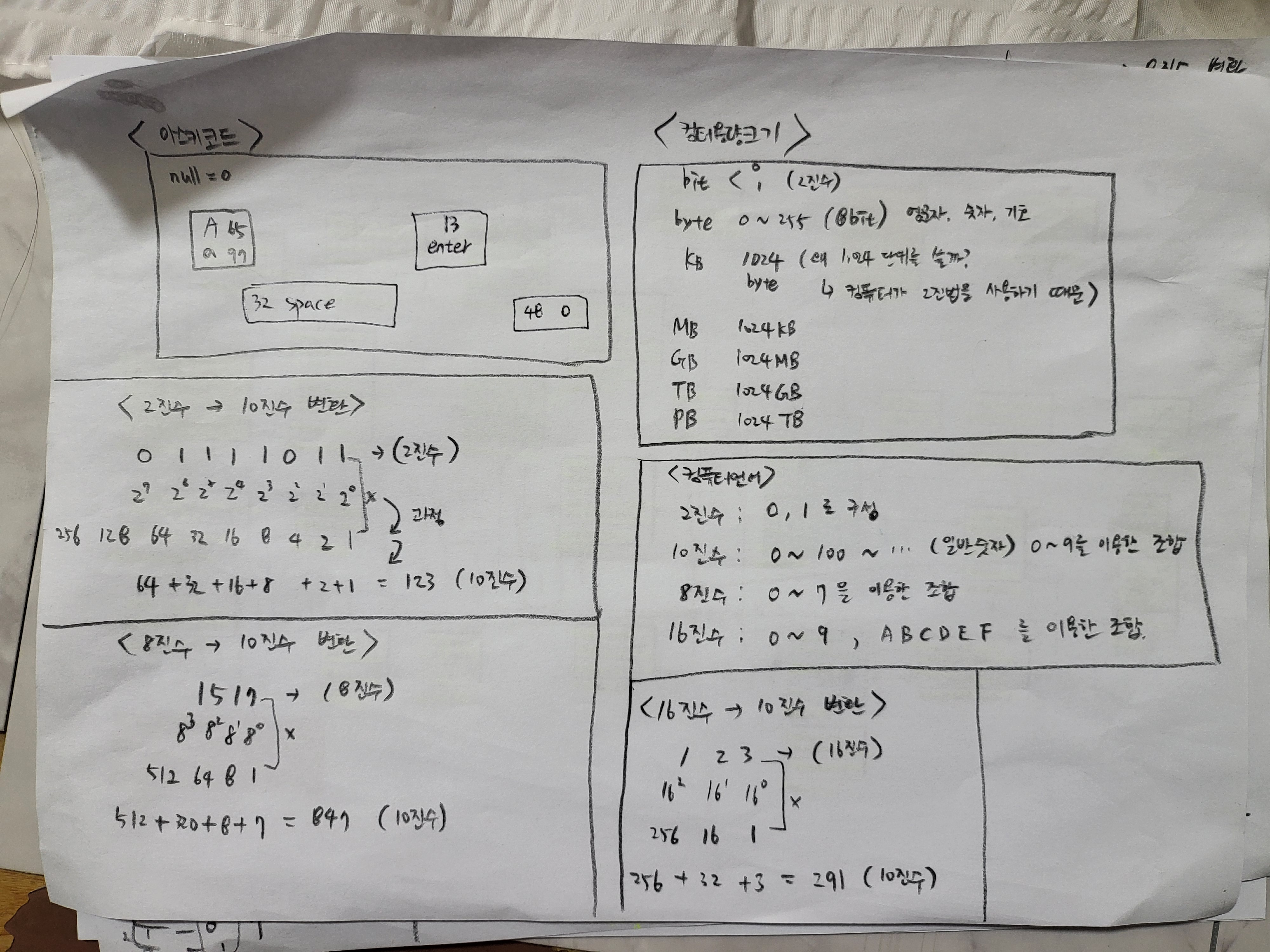 - 아스키코드(ASCII) -> 숫자,특수문자,영문자 = 1byte
