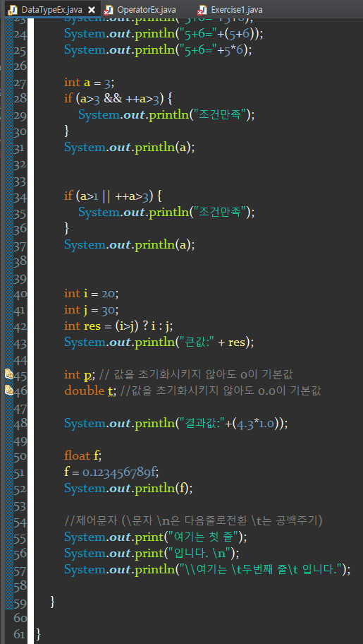 // 7.아래 코드의 문제점을 수정해서 실행결과와 같은 결과를 얻도록 하시오.