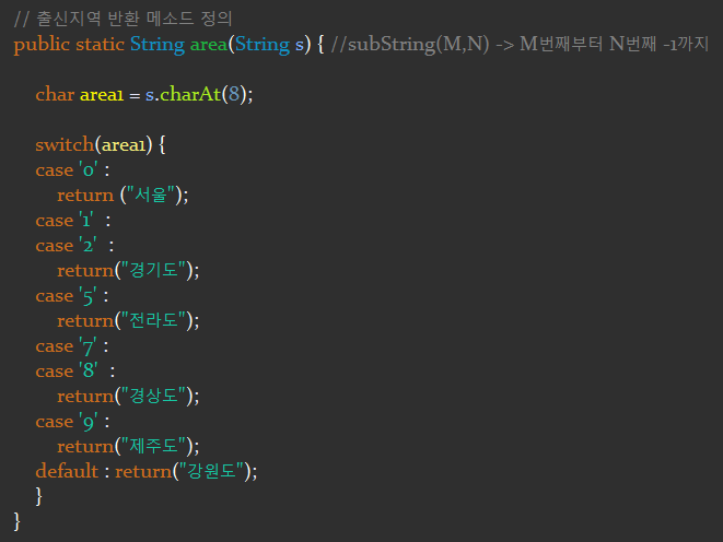 2. 메소드 바디 : 입력 받은 데이터의 값에 따라 4종류의 문자열을 표준 출력한다