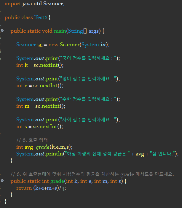 4. 정수형 데이터 1개를 매개변수로 받아서 해당되는 문자열(인사말)을 모니터로 출력하는 메소드