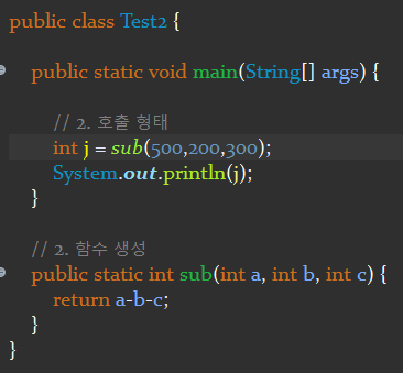 2. 메소드 바디 : (큰수-작은수)의 뺄셈 연산의 결과값을 변수에 저장한다