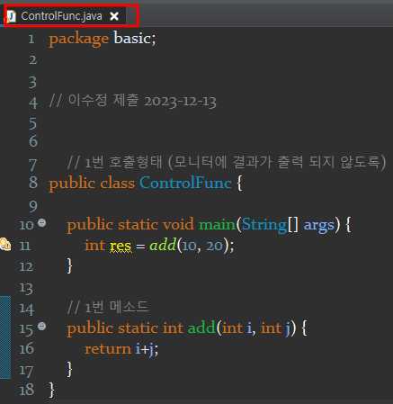2. 메소드 바디 : 덧셈 연산 결과값을 정수형 변수에 저장한다