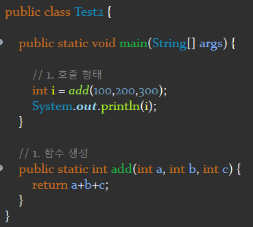 2. 메소드 바디 : 덧셈 연산 결과값을 모니터로 출력한다(표준 출력 메소드)