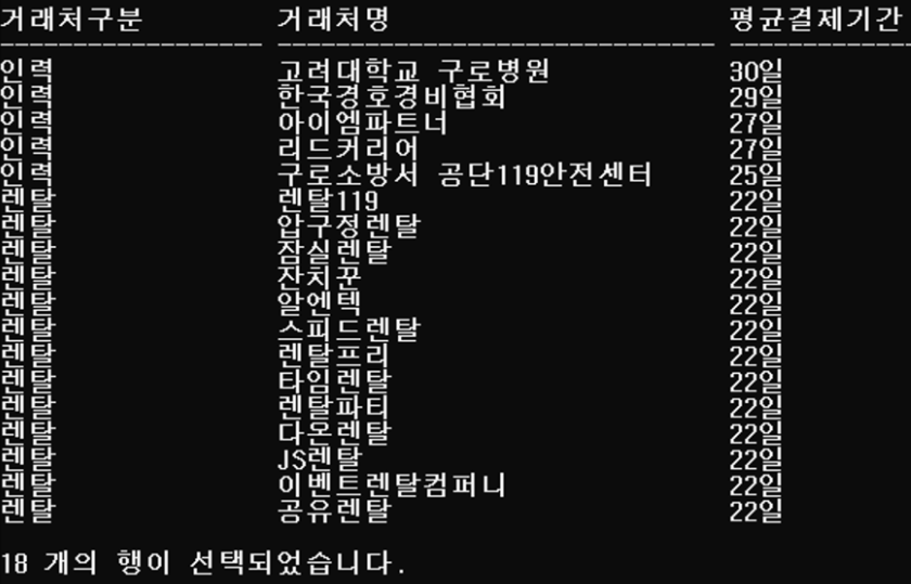 15. 거래처별 견적요청일자와 실제 견적결제일자 사이의 기간에 대한 평균값을 계산하시오.