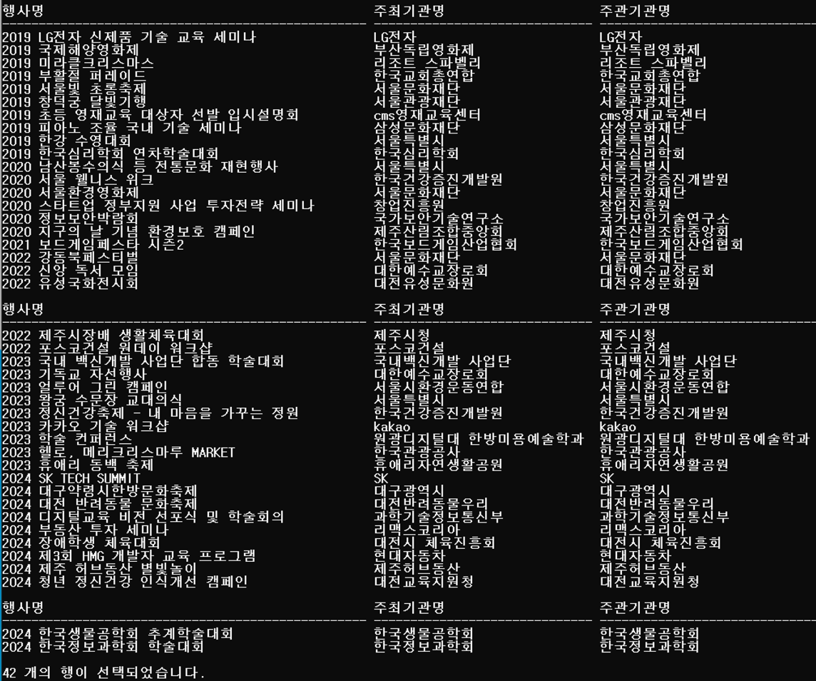 9. 주최기관과 주관기관이 동일한 행사를 조회하시오.