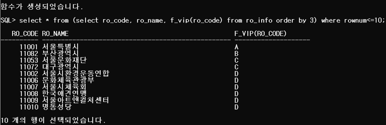 7. 주최기관별 행사개최 횟수에 따른 기관 VIP 등급(A등급~D등급)을 출력하는 함수